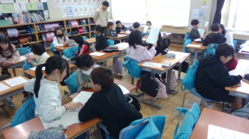 今日は、中学校の先生が算数の授業をしにきてくれました。