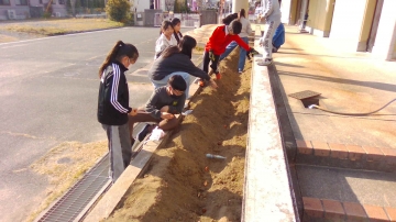 体育館南側の花壇に、環境・整備委員でチューリップの球根と、パンジーの苗を植えました。春、きれいに咲きますように。