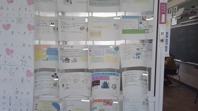 今日は五年生の社会でインターネットの危険性について調べてまとめたものを見に行きました。そして五年生にインタビューをしました。「SNSのルールをきちんと理解して使うことが大切だと学びました」や「インターネットが本当の情報なのかちゃんと調べられるようになった」などいろいろな意見が聞けました。