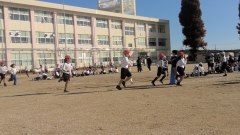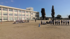 寒くなってきましたが、運動場から準備体操をする大きな声が聞こえてきました。2年生の体育の授業です。その後、5分間走に取り組んでいました。走る人と何周めか数える人に分かれ、走り出しました。「がんばれー」と応援する声が響いていました。