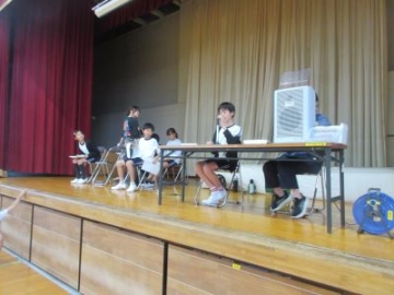 6限めに、運動会の最終係打ち合わせを行いました。運動場の状態が良くなかったため、体育館での実施となりましたが、運動会本番さながらの状況をつくり、それぞれの役割を確認しました。徒競走をモデルとしたため、走者は4年生がお助けで手伝ってくれていました。子どもたちも、本番を間近に控え、真剣に動きを確認する姿が印象的でした。一人ひとりが役割をきちんと果たすことで、競技や演技だけでなく、運動会すべてが成功につながります。5・6年生の皆さん、運動会の成功をめざしてがんばりましょう!