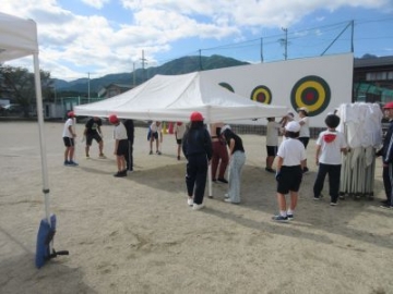 5・6年生が午後から前日準備を行いました。重いテントを運んだり、立てたりする作業、運動場整備、机やいすなどの準備、放送など、それぞれの役割に分かれて、準備を行いました。「仕事が終わったら、テント設営を手伝ってください」と先生から声がかかると、すぐに動いたり、自分から仕事を見つけたりと、意欲的に活動することができました。高学年の皆さんのやる気で、明日の運動会の成功につながることを確信しました!