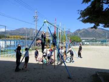 春の日差しがとても心地よい日となりました。今日は、1、2年生が本町公会所にある公園に遊びに出かけました。縄跳びやドッジボール、遊具など、自分たちで遊びを決めて楽しむ姿が見られました。公会所は、町たんけんの時に立ち寄った場所です。なじみの深い場所でもありますが、子どもたちにとっては、学校とは違う場所で活動することがとても楽しかったようです。1年生も2年生もともに、仲良く過ごすことができたことが、素敵な姿だなあと感じました。