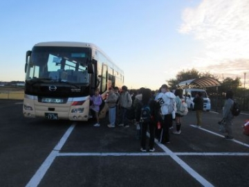 11月20日(木)、21日(金)の2日間、6年生が奈良・京都方面を目的地とし、修学旅行を行いました。集合時刻は午前7時。少し肌寒くはありましたが、風もなく穏やかな晴天に恵まれました。多くの保護者の皆様や教職員に見守られ、出発しました。バスの中では、近くの席の仲間との話を楽しんだり、事前に各班で考えてきたバスレクを楽しんだりするなど、移動の道中も楽しんでいました。名阪国道の天理の山を越えるころに、天理市内の町や山々の紅葉の様子が眼下に広がると、「すごくきれい!」と感嘆の声が上がっていました。