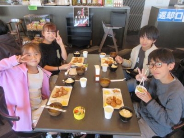 買い物が終わると、旅館です。一日の疲れを癒しながら、仲間とともにトランプなどのカードゲームをしたり、会話を楽しんだりと、普段以上に、ゆっくりと過ごす時間を子どもたちなりに楽しむことができました。お世話になった旅館の方々には、代表の子どもたちが挨拶をしましたが、他の子どもたちからも自然と、「よろしくお願いします。」「ありがとうございました。」と挨拶の声が出ており、日ごろの意識が表れていることを実感しました。部屋で荷物を整理した後は、夕食でした。しっかりと歩いた分、たくさんいただくことができました。