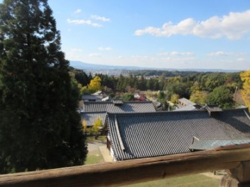 公園内を歩きながら、まずは二月堂へ上がっていきました。途中、鐘楼(しゅろう)の鐘は、子どもたち全員がその下に入るほどの大きさで、子どもたちも鐘の中を見上げながら、通っていきました。お堂からは奈良の都が一望できるポイント。天気も良く、遠くまで見渡すことができ、子どもたちもしばらく眺めに浸っていました。