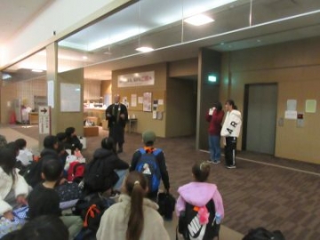 太秦映画村での活動を終え、岐路につきました。バスの中は、行きや移動中と打って変わり、静まり返っていました。2日間、しっかり楽しんだり学んだりした疲れが一気に出たことでしょう。夢を見る間もなく、気が付いたら地区市民センターだったという子もいたようです。地区市民センターでは、保護者の方々にお迎えに来ていただき、子どもたち一人ひとりが、無事を伝え、