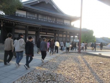 21日(金)2日めの朝がやってきました。朝ご飯をいただき、退館式を行った後は、西本願寺の周辺や境内などの見学をしながら、朝の散策をしました。