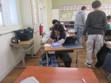 2学期も終わりに近づき、一人ひとりが学習に向き合ったり、仲間とともに学び合う姿が見られたりします。1年生では、発表ノートを使って学習するために、準備をしていました。操作に困っている子がいると、近くの席の子が自然と動き出しました。わからないことや困ったことがあると、関わろうとすることで、どの子も学びに向かうことができました。