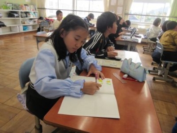 3年生では、保健で「体のせいけつとけんこう」について学習をしていました。なぜ体を清潔にしなくてはならないか、考えを伝え合った後、教科書の大事なところに線を引いていました。学習したことのポイントをしっかりと確かめることができました。