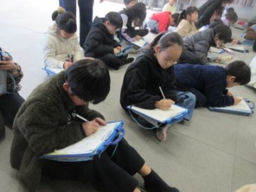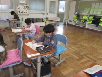 1年生が国語の時間に、年賀状を書きました。送りたい人に、どんな新年のご挨拶を書くか、予め考え、清書をしました。教室に入ると、静かに集中して取り組む1年生の子どもたち。書かれている字も、とても丁寧でした。入学から2学期までの間に、しっかりと成長した姿を見せてくれていました。