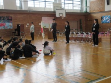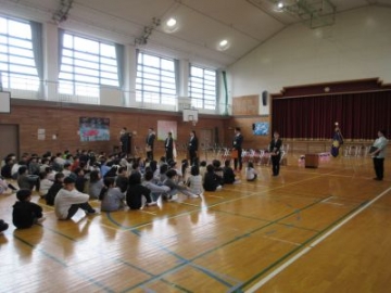 今年度末で学校をかわられる先生方との離任式を行いました。離任される先生方が紹介されると、驚いたり悲しんだりする姿が見られました。最後は、5年生の子どもたちのつくる花道を通っていただき、お見送りをしました。保護者の皆様、地域の皆様にはたいへんお世話になりました。