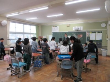 修了式後、各教室では、最後の学級活動でした。3学期の成績表を渡したり、片づけをしたり、離任される先生方にサプライズで手紙を書いたり…それぞれの学級で最後の活動を行いました。短い時間でしたが、先生の話をしっかりと聴こうとする姿は、1年間の成長を感じることができました。