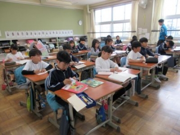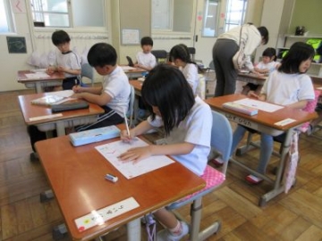 国語科の授業で、話を聞き取るためにメモの取り方の学習を行っていました。今日のお話は、教頭先生。お話のテーマは水族館。水族館にまつわるエピソードをお話していただきながら、子どもたちは真剣にメモを取ります。約1分間、教室には教頭先生のお話と鉛筆で書く音だけが響いています。お話が終わっても、思い出しながらメモを書き続けました。聞き取れなかったことは、互いにメモすることができたことを交流しながら、お話の全体像をつかみました。人の話を聞くうえで、要点を聞き取ることはとても大切です。4年生の学びに向かう姿がとても素敵でした。
