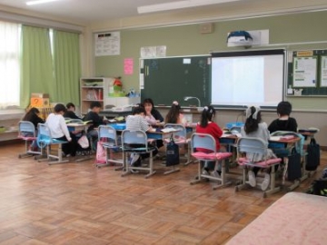 3年生の国語科の授業。今日のめあてや課題をノートに書き、一人ひとりが考え始めていました。ノートに向かう姿は、さすが3年生。黒板や教科書をよく見ながら、とても丁寧にノートづくりに取り組むことができました。「書く」ことは、自分の思いや考えを整理したり、大事なことを記録に残したりするために、とても大切な活動です。3年生の学びに向かう姿がとても素敵でした。