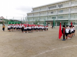 運動会の全校練習を行いました。開会式の流れを確認した後、赤白にわかれてエールの交換を行いました。応援団の声に合わせて、赤白それぞれの子どもたちが魂のこもったエールを届けようと全力で声を重ねていました。運動会当日も、団結した声と心で盛り上げてくれることだと思います。