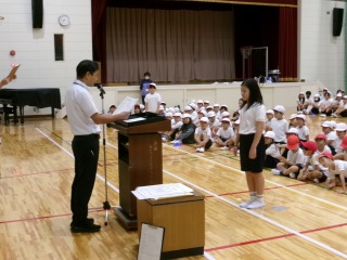 社会科作品・科学作品・美術作品・読書感想文の表彰と公害と環境に関する研究作品の校内代表出品者の紹介を行いました。学ぶことの楽しさを感じながら、自分なりに考える力が育っていると感じます。表彰されると全校児童から大きな拍手が送られて、体育館中が温かでやさしい雰囲気になりました。