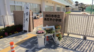 本日、令和8年度の入学式を行い、21名の新しい1年生が高花小学校に仲間入りしました。校門には、今年も地域の皆さまが心を込めて飾ってくださった花々が咲きそろい、入学児童をやさしく迎えてくれました。