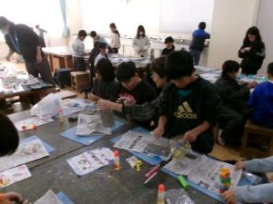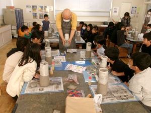 ばんこの里会館の方に来ていただき、3年生が万古焼体験をしました。