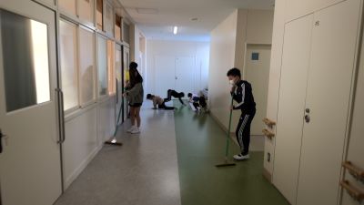 学期末の大掃除をしました。いつもより10分長く、午後1時5分から1時30分までしました。普段できない場所まで丁寧に掃除を進め、からぶきしていたところを水拭きしてから再度からぶきを行いました。流しはクレンザーを使って磨き、ホワイトボードや図書棚の上も拭き掃除をしました。2学期終了を前に学校のさまざまな場所がきれいになり、とても気持ちのよい時間となりました。