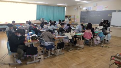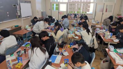 5年生の理科では、電磁石の性質を調べる学習に取り組んでいます。子どもたちは、乾電池1個を使い、100回巻きのコイルと200回巻きのコイルで、どちらがより多くの釘を引きつけるのかを比較する実験を行いまいた。予想を立てたあと、実際に自分で回路をつくり、電流がしっかり流れるように慎重に接続していきます。釘がたくさんつながるように、真剣な表情で作業する姿からは「もっとつくかな」「これだけの差があるのか」などのつぶやきが聞こえてくるほど、夢中になっていました。実験の結果は、少しずつ違いが見られますが、同じ条件で行っても、巻き方のきつさや接触の具合など、わずかな違いが結果に影響することも、子どもたちは学ぶことができるのだと思います。自分で確かめ、事実から学びを深めていく経験は貴重です。今回の活動を通して、科学の面白さや探究する楽しさを味わうことができたのではないかと思います。