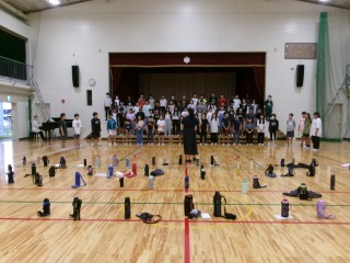 5・6年生が、四日市市文化会館で行われた三泗小学校音楽会に参加しました。体育館で声出しの練習をしてから出発しました。本番前には緊張していた子どもたちでしたが、舞台では堂々と自分たちの歌声と学校紹介を披露していました。大きな舞台での発表は、一人ひとりにとって貴重な経験になったことだと思います。