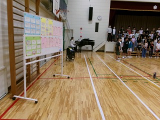 体育館には、5・6年生に向けた下級生からの応援メッセージが掲示してありました。