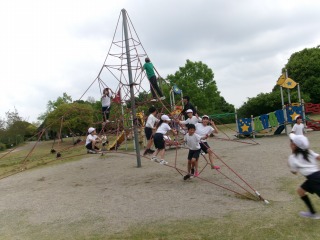 大きな遊具で友だちと遊んだり、みんなと大縄跳びをしたりして楽しみました。