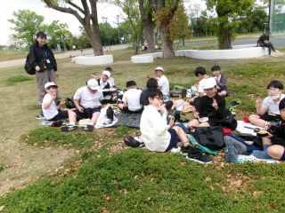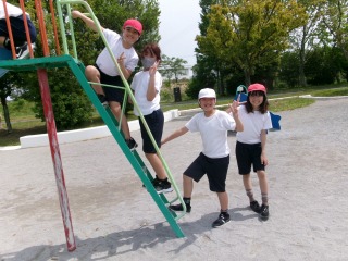 長距離を歩いて、少し疲れた様子でしたが、自分で作った弁当やおうちの人のメッセージ入り弁当を食べた後は、元気いっぱい友だちと遊んでいました。