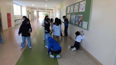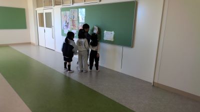 20分休みの時間を活用して、給食委員会の子どもたちが「元気もりもりスタンプラリー」を行いました。特別教室や体育館などに食育に関するクイズを掲示し、子どもたちは解答用紙を持ってラリー形式で回ります。各ポイントでは、給食委員会の児童が答え合わせをしてくれました。