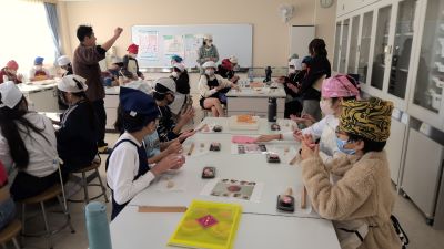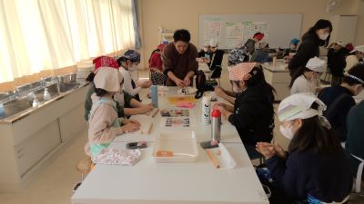 6年生が家庭科の授業で、和菓子づくりに挑戦しました。今回は「夢菓子工房ことよ」の岡本伸治さんをお招きし、和菓子の魅力やつくり方について教えていただきました。岡本さんは、世界各国で和菓子の魅力を発信したり、テレビ番組で活躍されたりと、幅広く和菓子文化を伝えている職人さんです。授業では、岡本さんのお手本を見ながら、子どもたちが一つ一つの工程を丁寧に進めていきました。餡の柔らかな感触を楽しみながら形を整え、模様にこだわって仕上げていきます。できあがった和菓子は、どれも個性豊かで、まさに「世界に一つだけ」のオリジナル作品となりました。子どもたちは、自分の手でつくり上げた和菓子に満足した様子で、完成した作品は家に持ち帰り、家族と一緒に味わうことだと思います。伝統文化に触れながら、ものづくりの楽しさや達成感を味わう貴重な時間となりました。