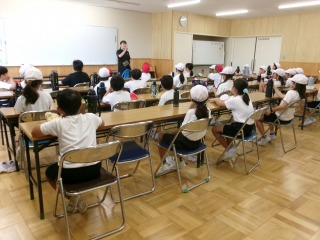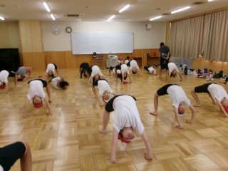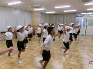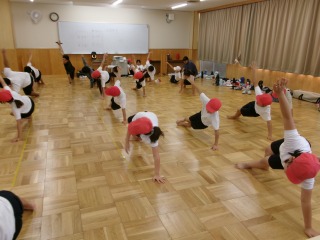 まだまだ暑い日が続きますが、運動会の練習が始まりました。今日は、3年生と5年生が表現の練習をしていました。熱中症対策として、多目的教室で行いました。3年生は、本年度の表現のテーマを確認してから、音楽に合わせて練習しました。友だちと合わせるところや力強く表現するところなど、細かなところはこれから練習していきます。5年生は、音楽に合わせて組体操の一人技を練習しました。指先まで意識することなど、これからの課題が確認できました。どの学年も、仕上がりが楽しみです。