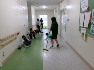 今日から1年生も清掃活動を行いました。