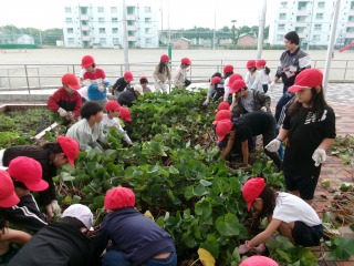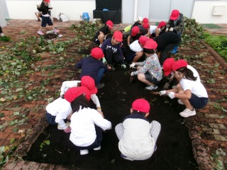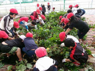 1年生が育ててきたサツマイモを収穫していました。どんなサツマイモが出てくるのかと、わくわくドキドキしながら、楽しそうに活動していました。土の中から出てきた大小さまざまなサツマイモに子どもたちは大喜びでした。サツマイモのつるはリースづくりに使うそうです。収穫したサツマイモはどうするのか、これから子どもたちで相談していきます。