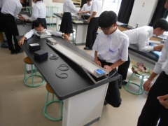 実験後、斜面上の物体にはたらく力を作図でかき表しました。