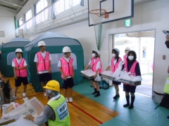 本日、常磐西小学校において常磐地区の避難所設営訓練が行われ、本校の生徒もボランティアとして参加しました。
