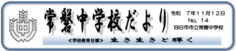 常磐中学校だよりNo.14を配付しました。