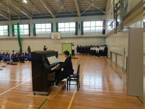 文化祭当日に1年4組が学級閉鎖により合唱を披露することができなかったため、本日、学年集会を行い1年4組の合唱を聞く機会を設けました。