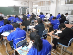 2年生技術科の授業の様子です。この時間は製図の授業で「