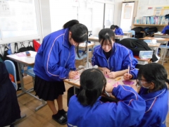 2年生の家庭科では、刺しゅう時計の制作をしています。