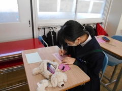 3年生では「1、2年生へ」「先生へ」ありがとうのメッセージを書きました。