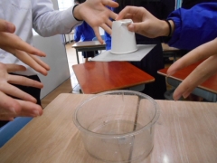 今日の理科の授業では、圧力(水圧、気圧)の復習をしました。
