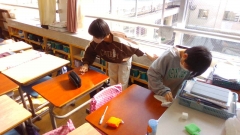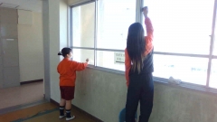 3月7日(木)、6年生が6年間の感謝の気持ちを込めて奉仕作業を行いました。子どもたちは、窓のさんのゴミを取り除いたり、ワックスがけのための水拭きをしたり、配膳台の黒ずみをメラニンスポンジでこすったり、汚れたトイレをきれいにしたりしました。誰一人として遊ぶことなく、バケツを持って小走りに移動したり、玄関マットを叩いていると「私やります」と言って代わったりして、意欲的に活動する姿が見られました。卒業すると、これまでのように自由に校舎に入ることはできなくなります。先生方だけでなく、これまで見守ってくれていた校舎にも別れを告げ、新たな気持ちで旅立ってほしいと思います。