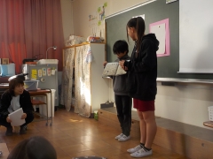 「とき西の子どもたちはリズムが良く、元気だね」とほめていただき、KUNI-KENさんの楽しい語りもあり、大変盛り上がった1時間となりました。