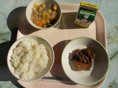 インフルエンザが流行しています。赤の働きは、血液や肉、骨を作る働きがあります。しっかり食べて毎日元気に登校してほしいと思います。