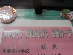 ピンクのシャツだけでなく、ピンクの小物などを身につけていじめ防止にむけて全職員員が取り組んでいます。名札には、ピンクの背景に6年生が考えた人権標語が印刷されていて、いじめ防止の意識を高めています。