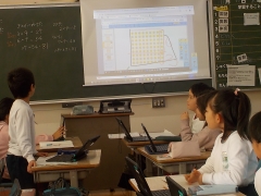 9の段の九九を学習しました。4の段と5の段にわけて考えるなどそれぞれタブレットを使って考えていました。それぞれの考え方をタブレットに表しながら学習しました。それぞれの考え方も発表することで、友達の考え方を使って理解する子もいました。