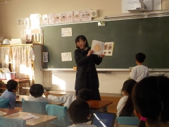 子どもたちは興味をもち、集中して目を丸くして聞いていました。読んでもらった本など、冬休みにたくさん本を読んでほしいと思います。