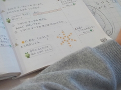 九九を学習し、子どもたちは数をまとまりで見て数える(計算)できるようになりました。きれいに並んでいたにドットをまとまりにしながら計算していました。
