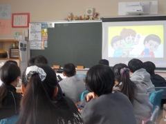 DVDを見て、子どもたちは自分たちならどうするのか考えました。「外国の方は日本の習慣がわからない」「外国の人は怖い」「外国の人はルールを守らない」という意見もありましたが、それは日本人でも同じじゃないかという意見があり、子どもたちならどう声をかけるのか考えました。